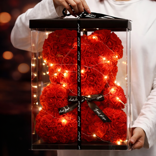 Eternal Rose Bear Jewelry Box – Rotating Storage Gift Box with Real Rose